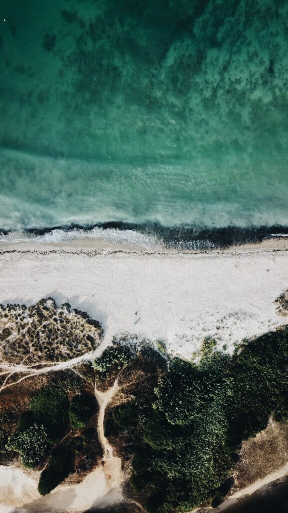 Vista aérea de la playa en Tarifa, España. Foto por Emilio Garcia.